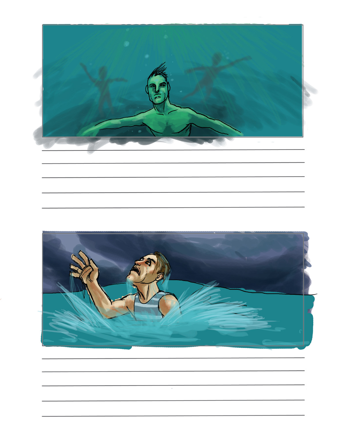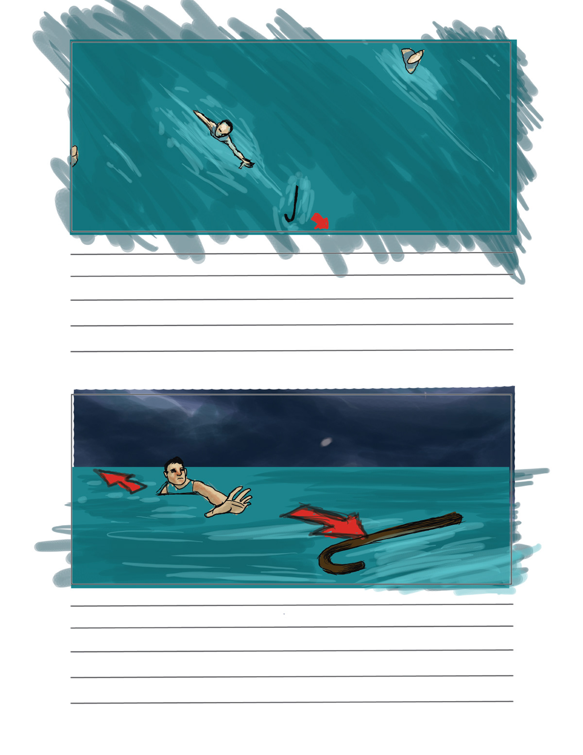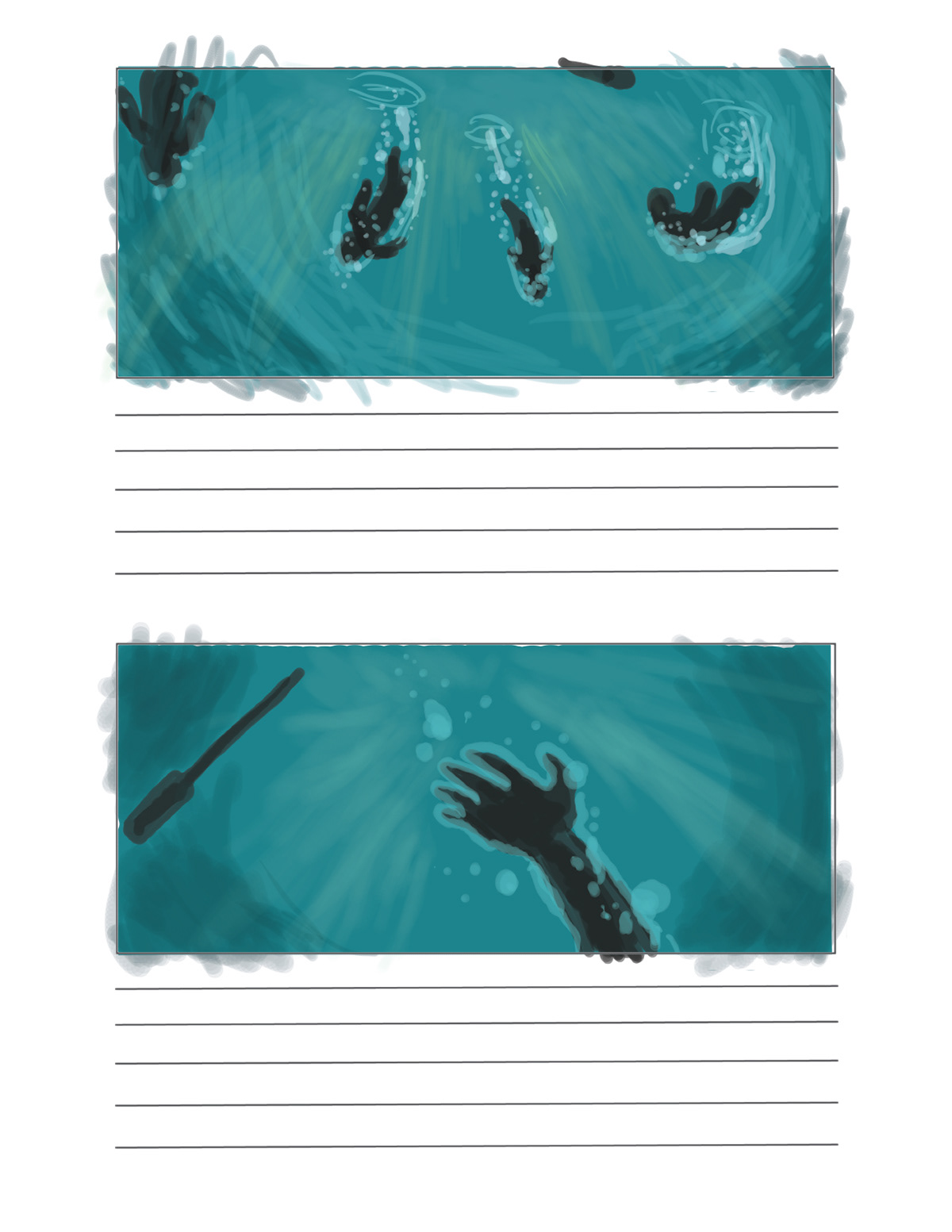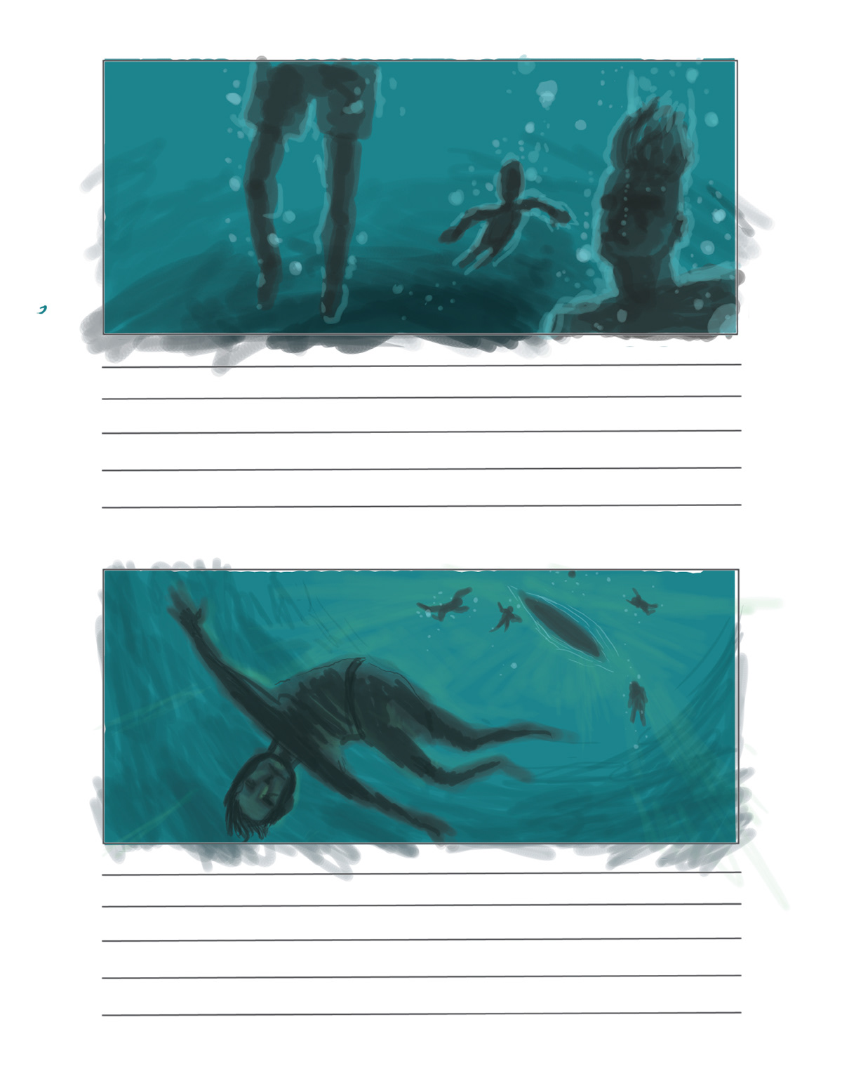 storyboard for water scenes of upcoming Canadian film.