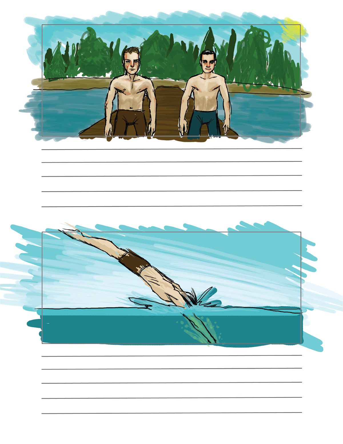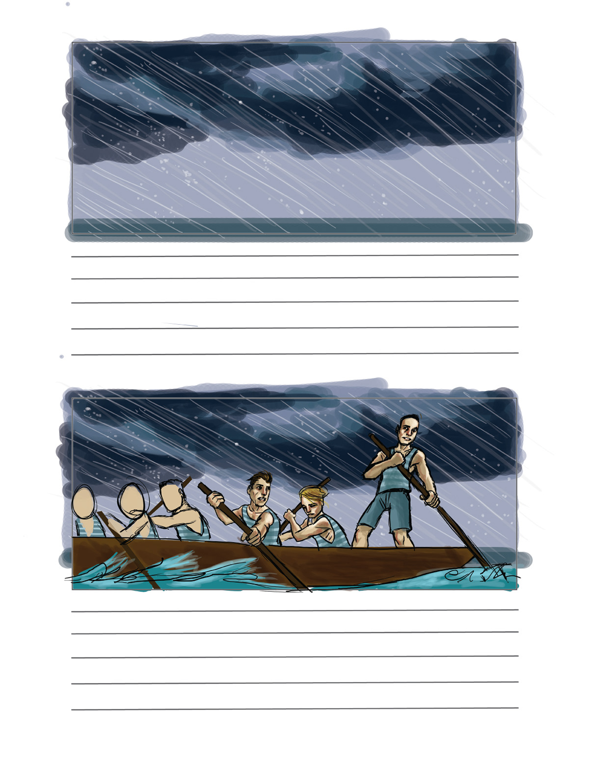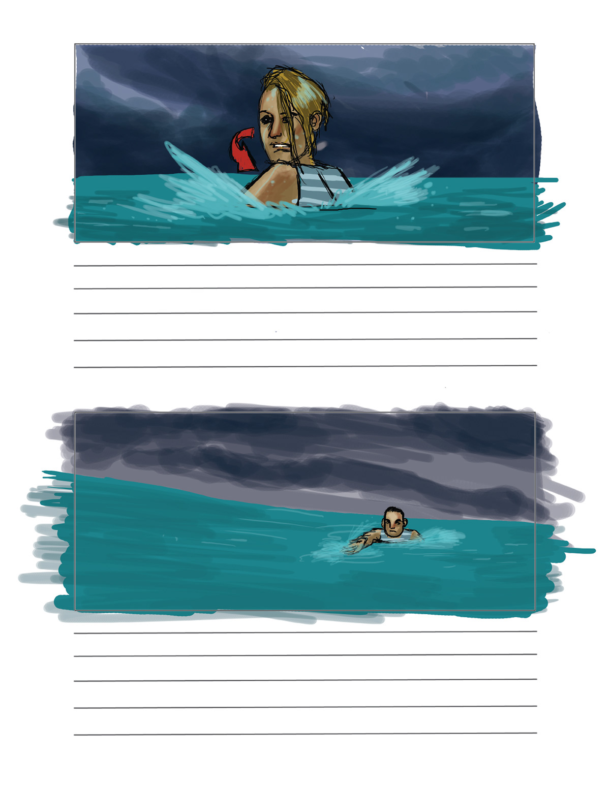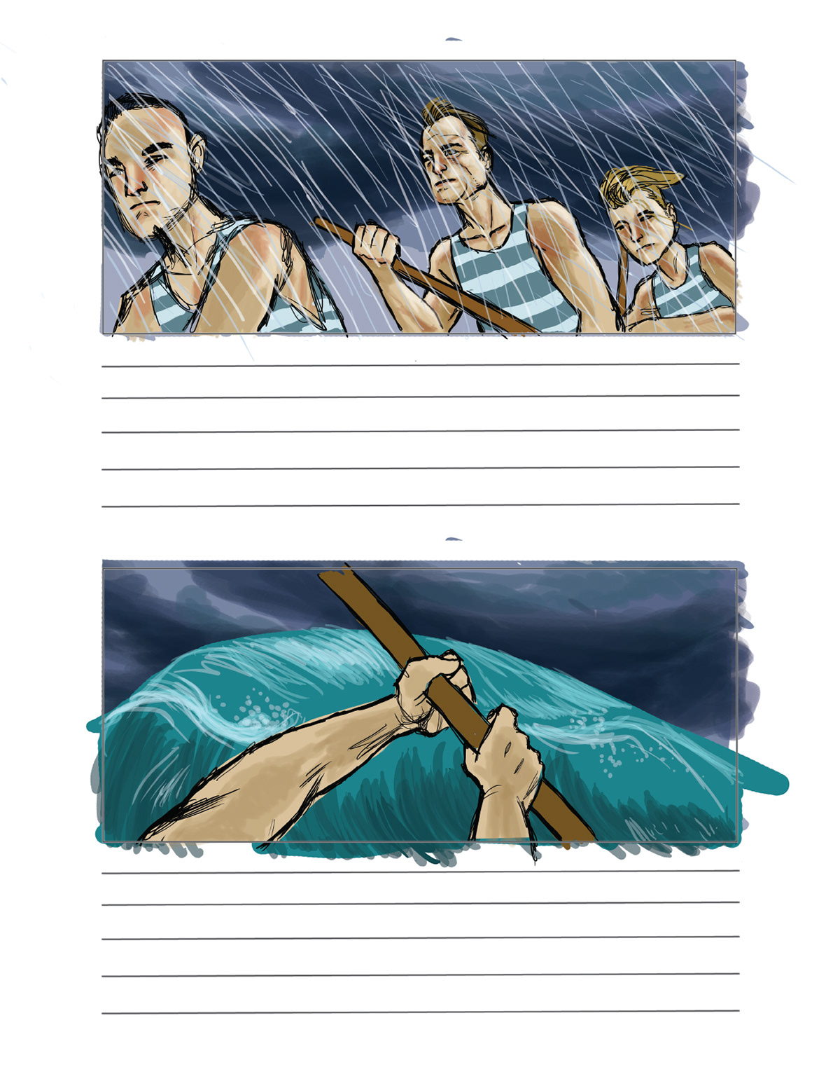 storyboard for water scenes of upcoming Canadian film.